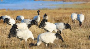 云南昭通:黑颈鹤翩跹 为冬日大山包增色/新华网