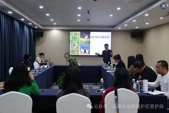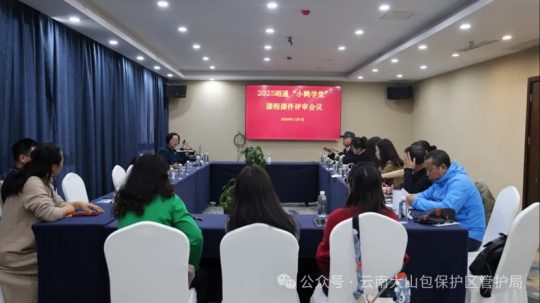 本网讯 (李何祥 摄影报道) 2025年11月7日,昭通黑颈鹤保护志愿者协会理事陈发琴、李何祥应邀参加由云南大山包黑颈鹤国家级自然保护区管护局召开的“2025昭通‘小鹤学堂’课程课件评审会议”,为昭通版“小鹤学堂”献言献策。昭通版“小鹤学堂”18节生态课正式通过评审,将于年内向全市小学投放。