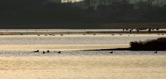 我们在默默地记录,远眺着它们从水面滑行,然后翻越四面的山坳。同时也在默默地等待日出,等待第一缕阳光照耀这片湖水,照耀这群候鸟,照耀我们。