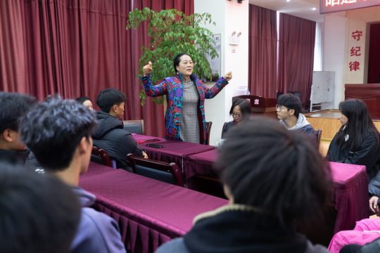 同学们在陈发琴理事生动有趣的演绎和授课中,遇到精彩处不自觉点头,彼此相互交换着恍然大悟的眼神。二十多分钟的授课,让同学们对黑颈鹤、大山包湿地有了大致的了解和认识,并表示想趁黑颈鹤陆续抵达越冬栖息地一探究竟其灵动舞姿。