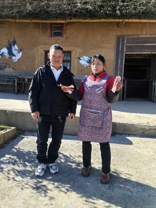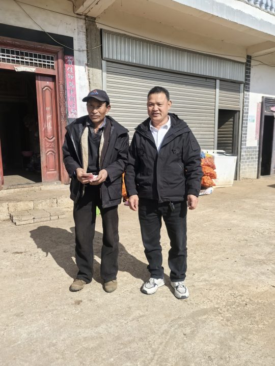 12月1日志愿者一行又前往永善县茂林镇永安村大海子湿地护鹤员马仕才家发放护鹤费,此次发的护鹤费是800元,鹤粮款是500元,共计1300元;据护鹤员马仕才监测到的数据表明,今年到永安湿地越冬的黑颈鹤有374只,是近年来黑颈鹤到永安湿地过冬最多的一年。发放完毕后志愿者一行又继续前往伍寨乡白云村大陷塘护鹤员李怀正家并在他家门前发放了护鹤费800元和鹤粮款500元,共计1300元;李怀正介绍今年到大陷塘湿地越冬的黑颈鹤37只,较去年减少40只,这几年到这里越冬的黑颈鹤逐年减少可能与这两年当地大面积种植包心菜及安装三千多亩的光伏发电阵有关,导致黑颈鹤来此越冬的数量不多。