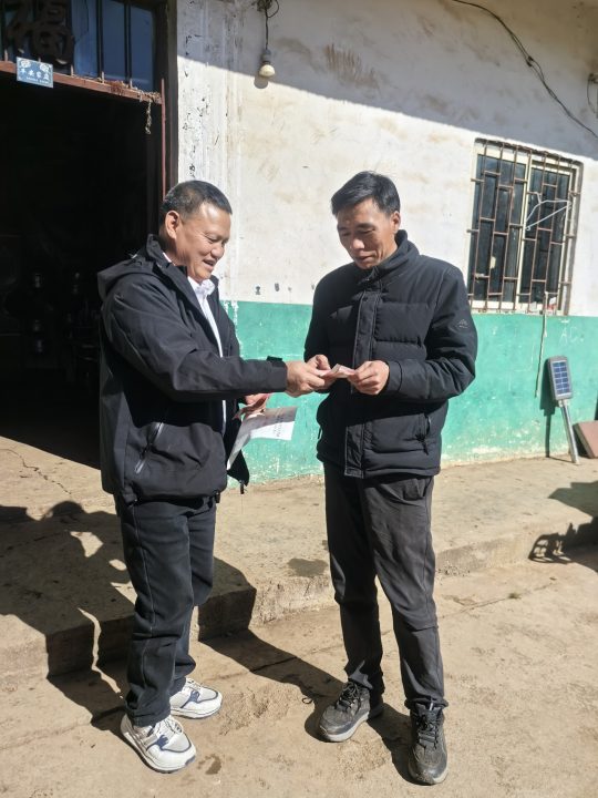 本网讯 (王顺平/报道 马学/摄影 陈光会/摄像) 2025年11月25日及12月1日,昭通黑颈鹤保护志愿者协会理事王顺平带着三名志愿者自驾车分别前往昭阳区大山包镇大海子湿地向护鹤员陈光会发放护鹤费,到永善县茂林乡永安村大海子湿地及伍寨乡白云村大陷塘湿地向护鹤员马仕才和李怀正发放护鹤费及鹤粮款。
