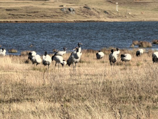 志愿者一行11月25日先到大山包大海子陈光会家发放护鹤费800元以及勒力寨湿地护鹤员陈大才的护鹤费800元,因陈大才路远未亲自到场领取护鹤费,改由其女陈光会代领,志愿者当场发放了护鹤费并了解了鹤情,据陈光会介绍,当日观察到的黑颈鹤数量为843只,另外据其他护鹤员所统计的数据显示,小海坝292只,长会口301只,殷家碑(勒力寨)115只,共计观测到在大山包越冬栖息的黑颈鹤有1551只,另外获悉护鹤员陈大才因年龄大身体差等原因明年将由儿子或儿媳挑起护鹤重任。