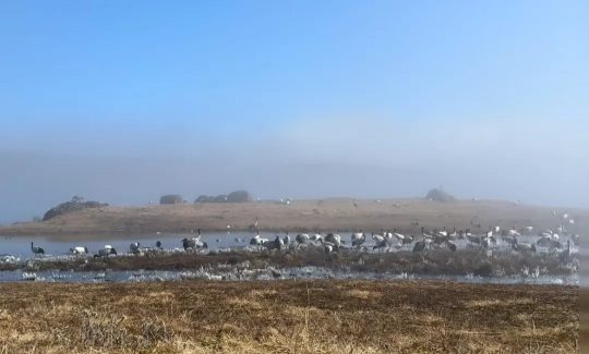 昭阳融媒2025-11-20消息 ( 记者李剑 刘跃武 通讯员李洋 宋邦彦/报道 陈光会/摄像) 自11月13日10只黑颈鹤作为“先头部队”飞抵大山包开始,大山包黑颈鹤国家级自然保护区越冬候鸟迁徙潮就持续不断,截至11月19日,虽受大雾等气候影响,但保护区工作人员已监测到黑颈鹤的数量突破300只。与此同时,斑头雁、赤麻鸭等各类水鸟也纷纷前来越冬,总数超过1000只。