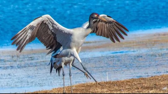 去年,首批黑颈鹤于11月初飞抵大山包越冬。今年,随着气温逐渐下降,越冬黑颈鹤虽然时间有所推迟,但这些高原精灵还是赶在11月中旬再次开始了它们的迁徙之旅。在保护区大海子湿地,黑颈鹤嬉戏觅食鹤语情歌,与成群的斑头雁、绿头鸭等鸟类快乐作伴,好像是在欢迎久别的老朋友。