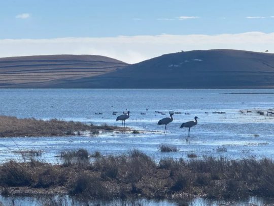 黑颈鹤是全球唯一终生在高原繁殖的鹤类,对生态环境质量极为敏感,被誉为高原生态健康的“活指标”。近年来,有关部门持续加大山包保护区湿地保护修复力度,每年安排专项资金,开展湿地保护、修复、监测、巡护、科研以及科普宣教工作。已建成智慧化监测系统,并备足救助食物,确保湿地休养生息,黑颈鹤等野生鸟类安全越冬。此外,保护区管护局已全面加强日常巡护与监测工作,致力于维护栖息地的生态完整与鸟群安全,为候鸟营造一个安宁、适宜的越冬环境。